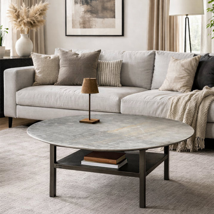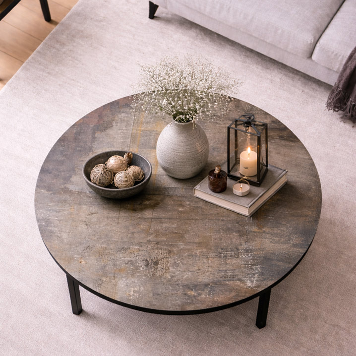Rundt Sofabord med Industriel Elegance