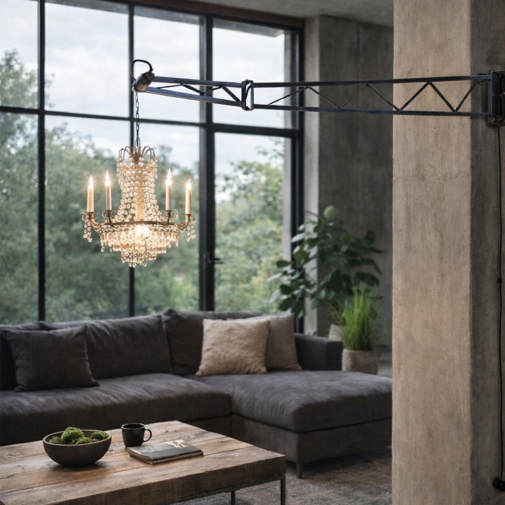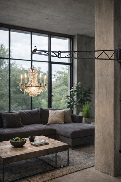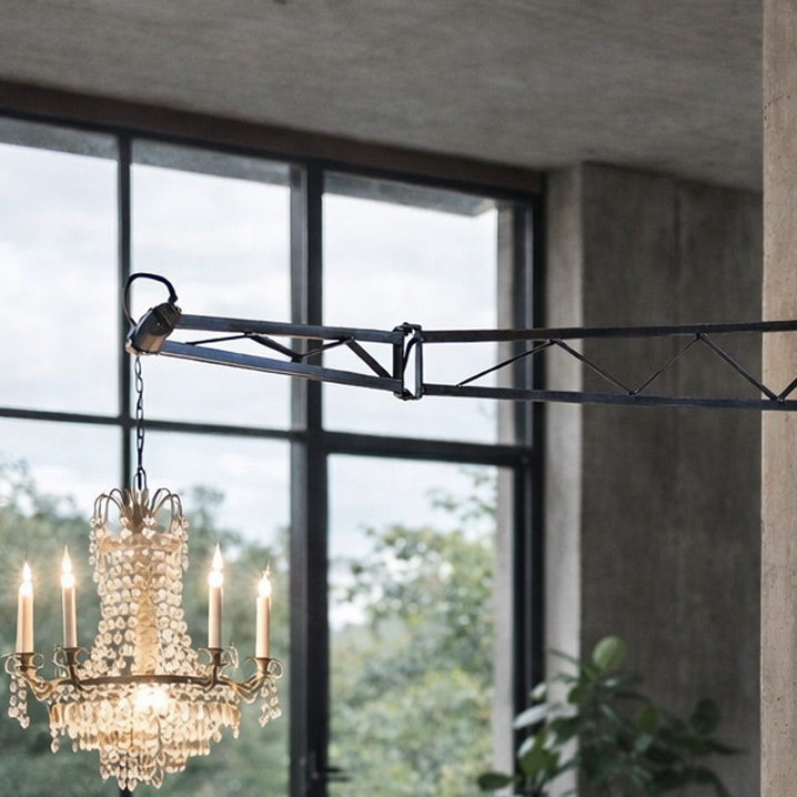 Skab et unikt og karakterfuldt udtryk i din indretning med denne stilrene lampearm, hvor råt industrielt design møder klassisk elegance. Armen gør det muligt at kombinere en herskabelig lysekrone med et moderne, minimalistisk eller industrielt miljø – og skaber en spændende kontrast mellem det fine og det rå.