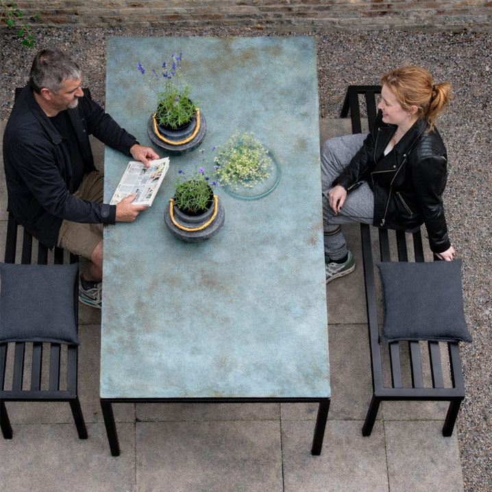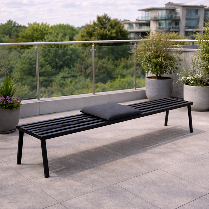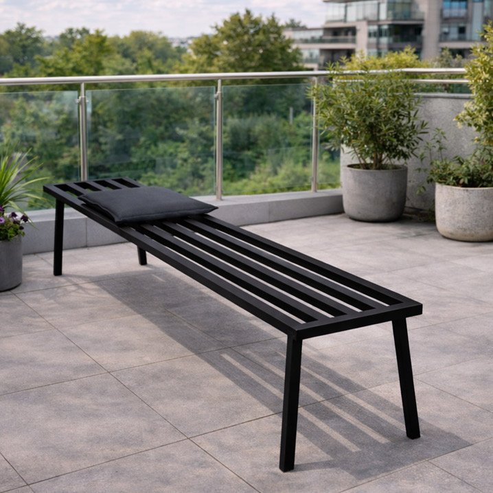 Tidløs stålbænk til terrasse, gårdhave og havebord