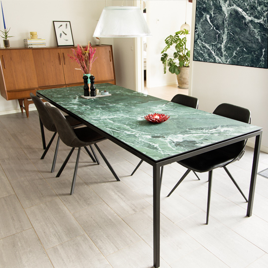 Italiensk, stilren og super praktisk keramisk bordplade, der er nem at vedligeholde. Du får en smuk, moderne og slidstærk bordplade, der endda kan tåle høje temperaturer. Bordpladen kræver stort set ingen vedligeholdelse, udover den almindelige daglige rengøring.