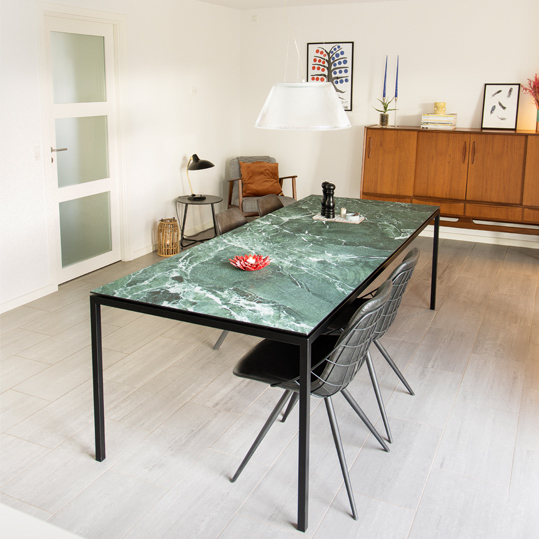 I webshoppen kan du bestille det færdige spisebord fra RN Design. Du kan også bestille et bord lige efter dine drømme, farver og mål og dermed få dit eget helt unikke bord.